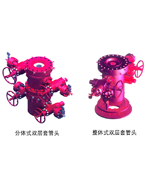 套管头、套管四通的套管悬挂器坐孔直座结构,坐挂台肩45度锥面,具有较好的承重能力。
